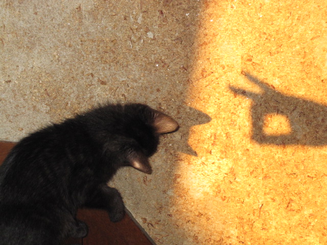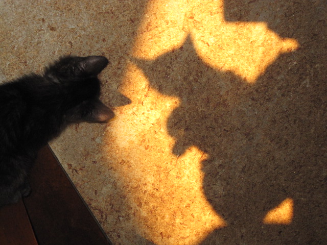 怪しいものが…(2010.2.20) で、こんなことをしてみたりして。エドガーの頭の影もあるけれど、こちらは本物の手に反応中。 |