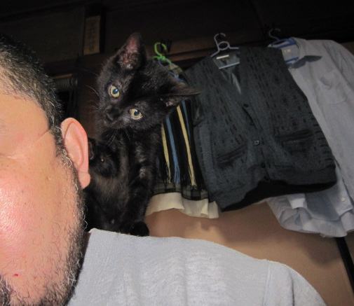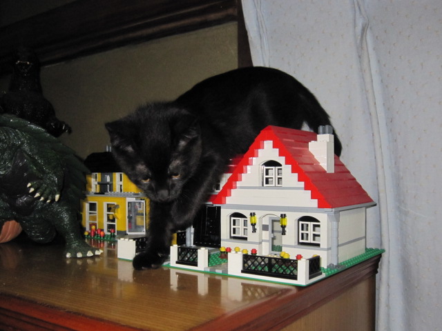 ニャジラ、現る(2010.3.1) 150センチほどのタンスの上にも、登れるようになりました。平和だった街が、パニックに。 |