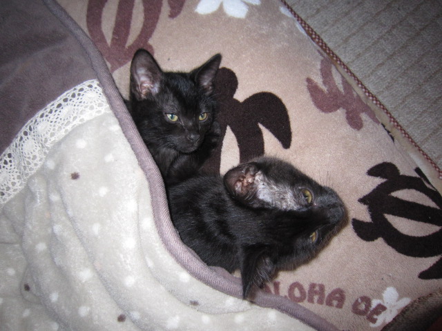 | 固い絆(2010.3.1) 抱きあって眠る。兄弟の固い絆? それとも、ただ寒かっただけだったりして。 |