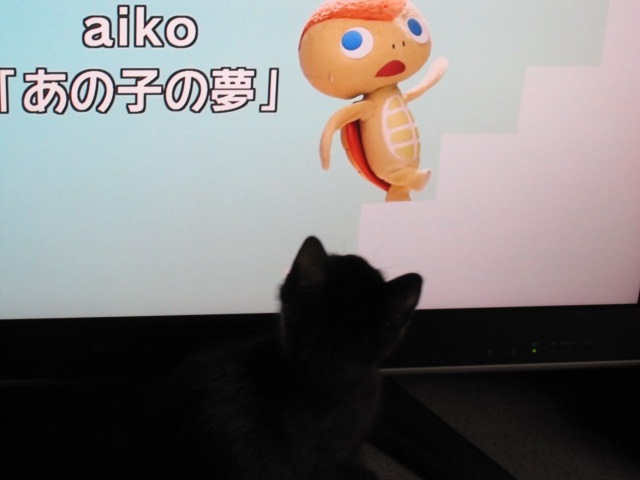 | 朝ドラを観る・その1(2010.3.4) ウェルかめのオープニング。亀のキャラクターの動きに反応。なんだこいつ? |