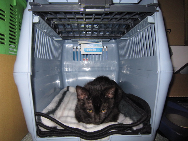 いいとこ見っけ・その1(2010.3.6) スタンバイちゅうのキャリーケース。なんなのかは、つゆ知らず。気に入っているようです。 |