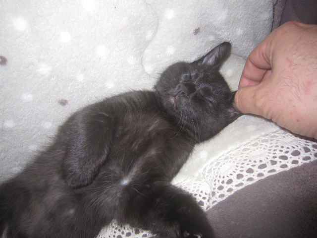 耳そうじ・その3(2010.3.11) 二匹そろって、こんな状態に。生きているのかと心配になるくらい、ぴくりとも動かない。 |