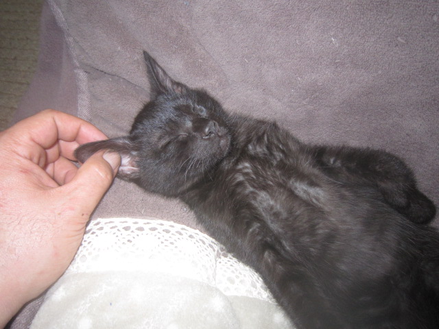 | 耳そうじ・その1(2010.3.11) 綿棒でそっと耳そうじ。催眠術にかかったように。獣医さんとこでは大騒ぎするけど? |